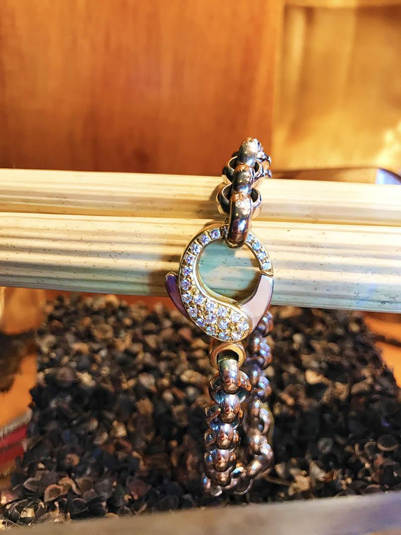The 18kt Yellow gold clasp has 1.00 ctw of paved  diamonds.