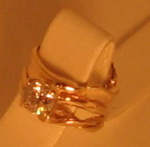 Additional pictures show a  matching woven yellow gold band that flows along the curves of the featured Diamond ring;  the matching ring is available for purchase separately please call for details.