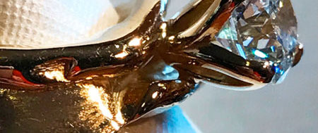 A beautiful and unique symbol of love and commitment, featuring a 1.52ct round brilliant H color SI2 diamond set in 14k yellow gold in a dbg design.