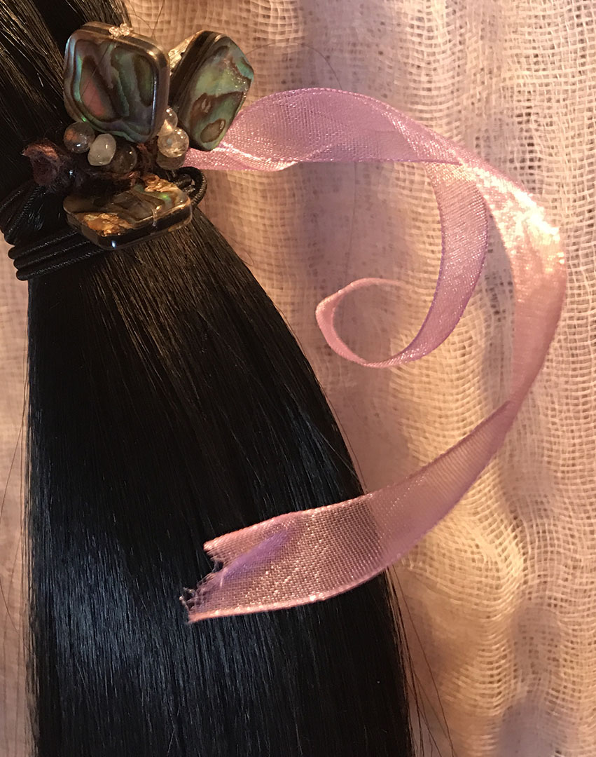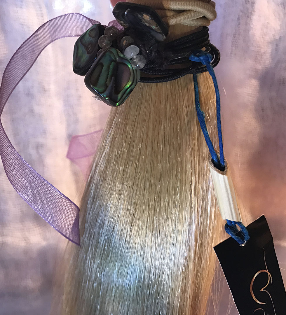 This gem wrap is an Abalone piece can be worn casually as a bracelet as well. Easily worn just twist a couple times around your hair to enhance hair style. Abalone, labradorite are natural gems.