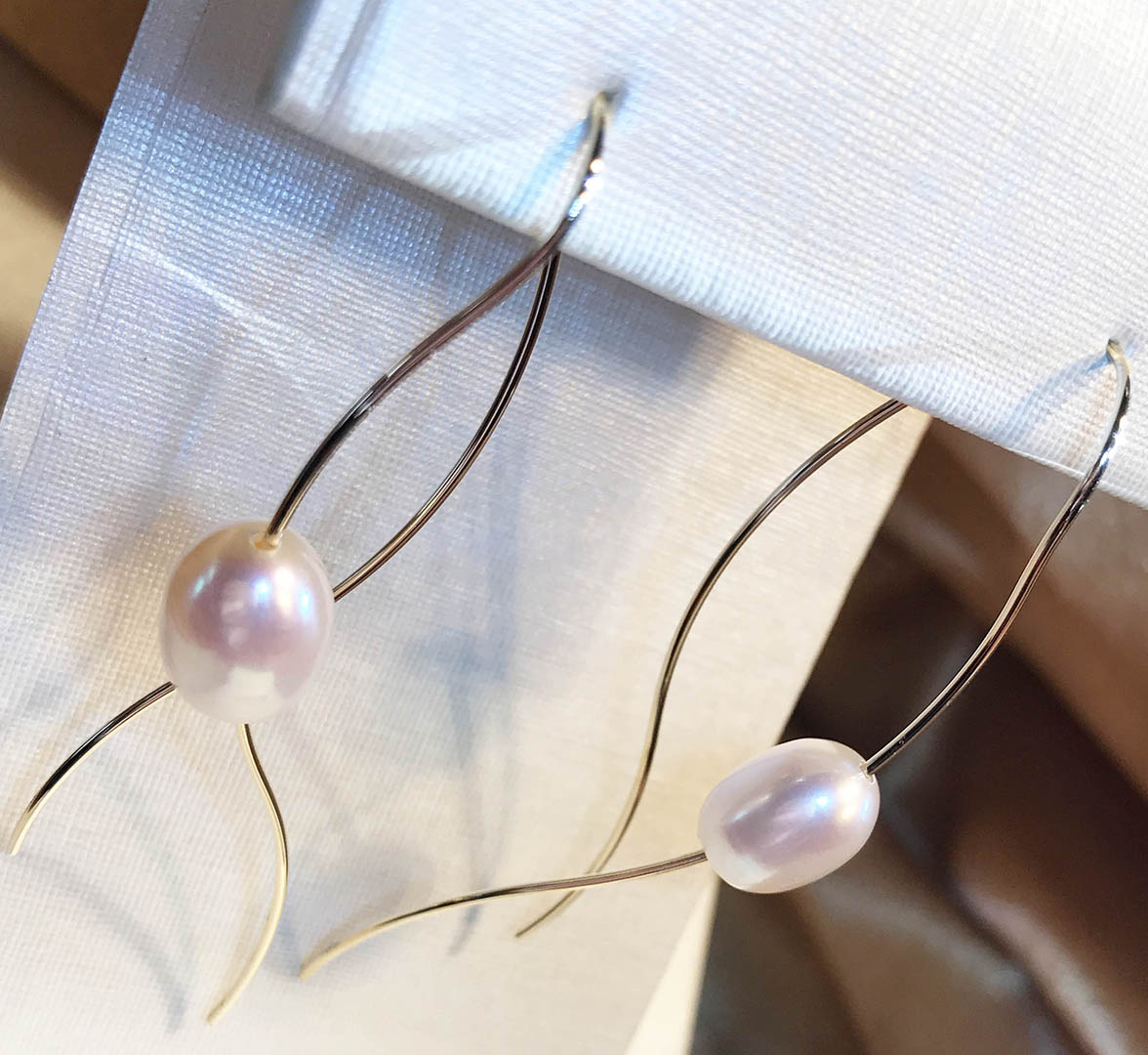 Genuine Pearl Spiral earrings 14kt yellow gold